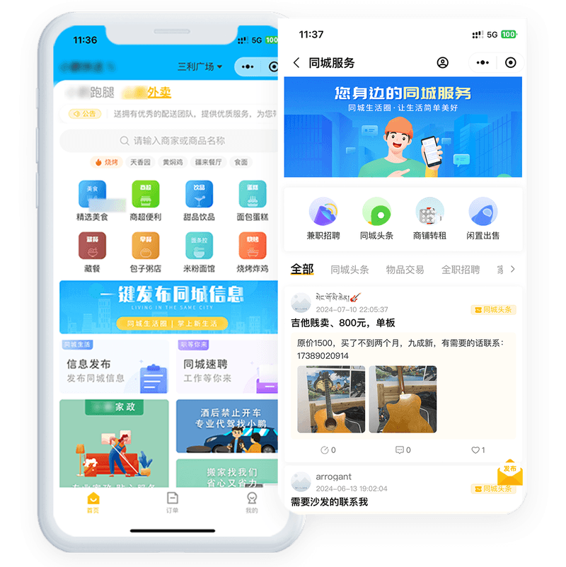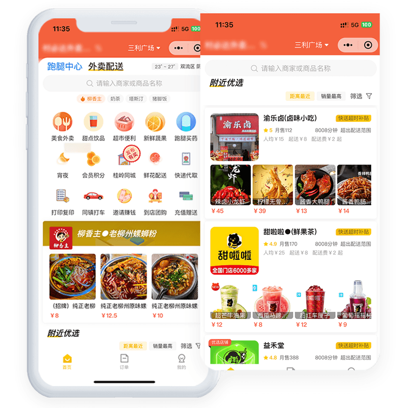 专注乡镇外卖点餐、跑腿配送,帮买帮送帮跑腿等,平台入驻商家70+ 日订单额已突破800+ 配送人员15人,目前已覆盖他们当地3个乡镇,用户直接通过微信小程序+公众号平台下单,无需下载。